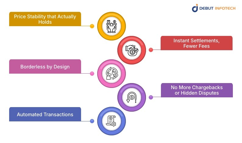 As crypto payments gain traction, stablecoins are fast becoming the go-to solution for anyone who wants the benefits of crypto — without the chaos. In fact, with our Stablecoin Development Services at Debut Infotech Pvt Ltd, we have been helping modern e-commerce businesses build reliable, scalable digital payment systems for the real world. Below, we discuss the intricate details of how stablecoins in e-commerce reduce the volatility in these digital transactions.